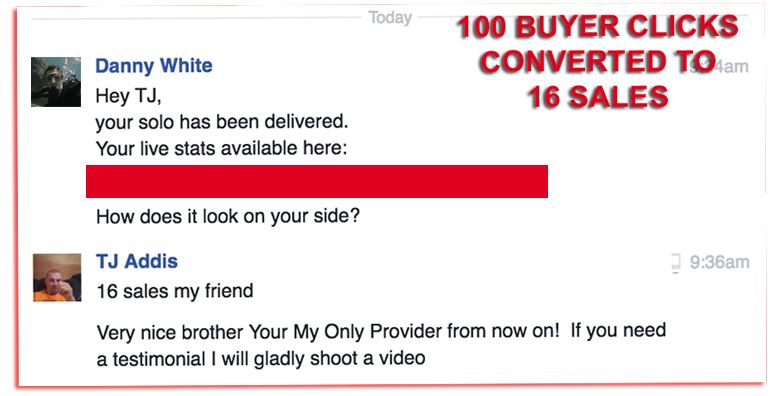 "This is crazy. I just checked my stats. 4 sales and 2 upgrades. Your list is awesome. This is by the far the most I've gotten from a solo ad. I'd like to buy out your entire inventory asap!"